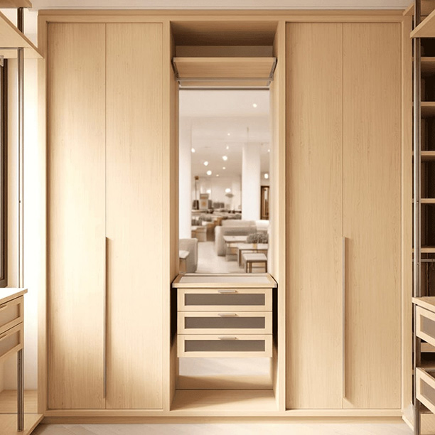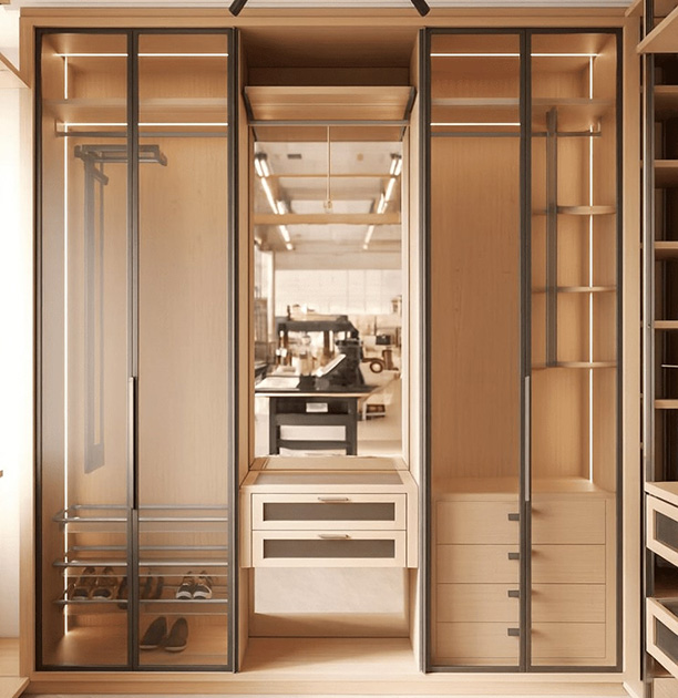 - Internal Configuration : Fully customizable with shelving units, hanging rails, drawer systems, and specialized accessory compartments (e.g., shoe racks, tie holders).