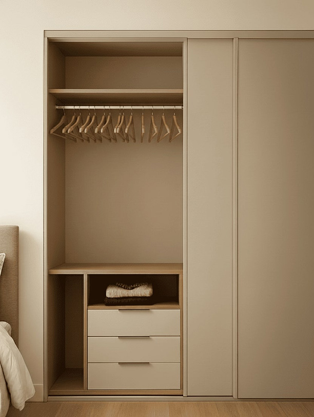 Al Reda Wardrobes are crafted with skilled carpentry and refined finishes, providing not just storage, but a custom-designed interior element built for efficiency and style.