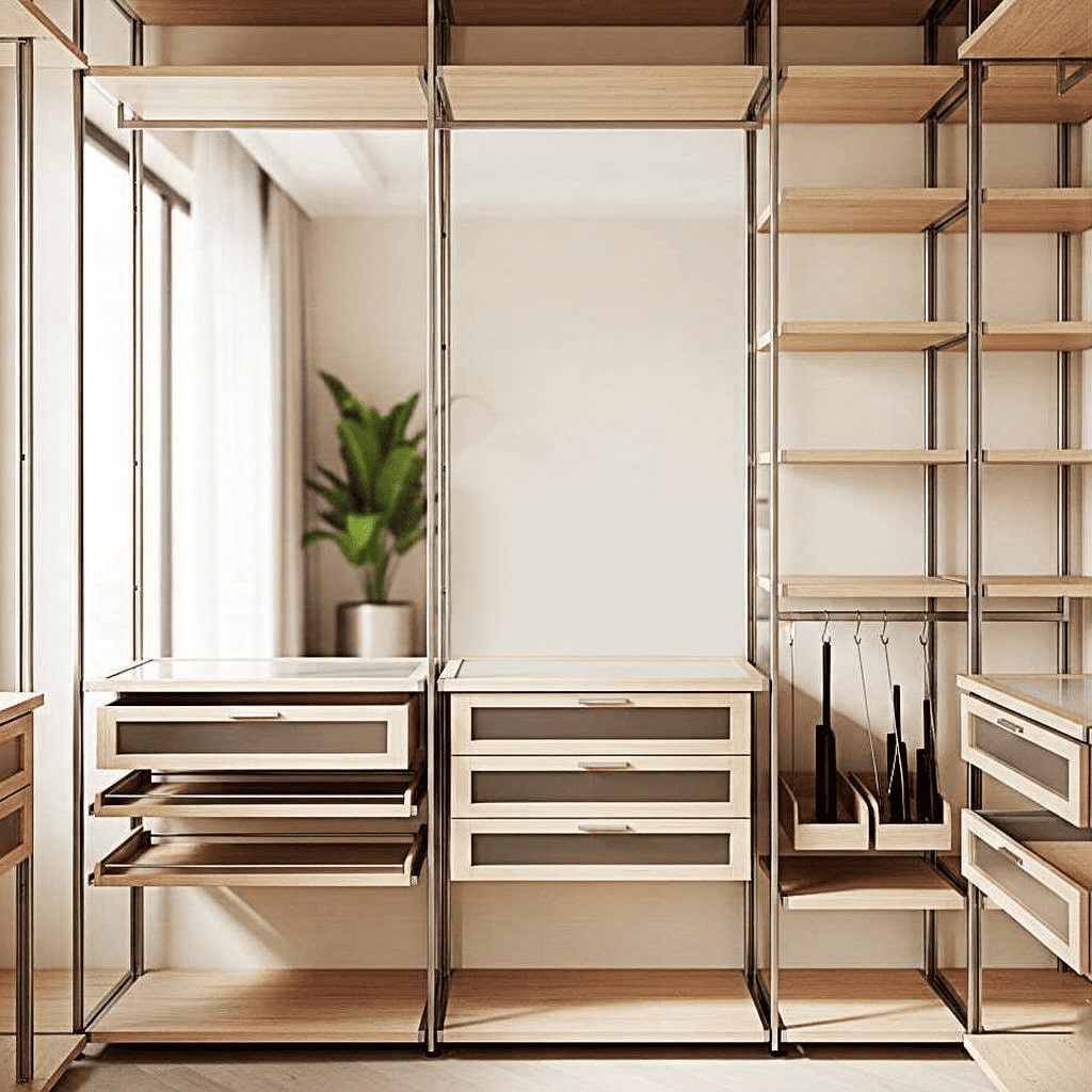 Bespoke modular systems designed to create dedicated dressing and storage rooms, focusing on ergonomic flow and luxury organization.
